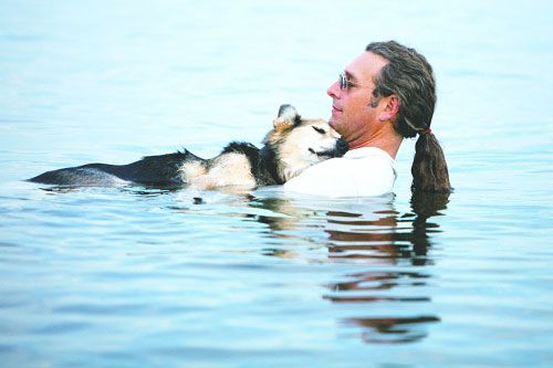 The original image, captured by photographer Hannah Stonehouse Hudson, featured the dog and his owner, John Unger, sharing a peaceful moment in Lake Superior. As the Pioneer Press reports, Unger, of Bayfield, Wisc., began taking his then 19-year-old pet into the water to help soothe the dog’s joint pain from arthritis. The buoyancy of the water, he found, helped lull Schoep to sleep. Unger’s friend Hudson, who wanted to capture the pair’s relationship, snapped the now-famous photo one evening and posted it on Facebook. The touching image soon swept across the web, turning Schoep into a canine celebrity. The original photo has been shared more than 214,000 times over the past year and helped raise funds for the elderly dog’s care. Animal lovers from across the globe donated more than $25,000 to cover veterinary bills, laser eye treatments and medications not just for Schoep, but for other aging dogs from low-income families in need of special care as well.